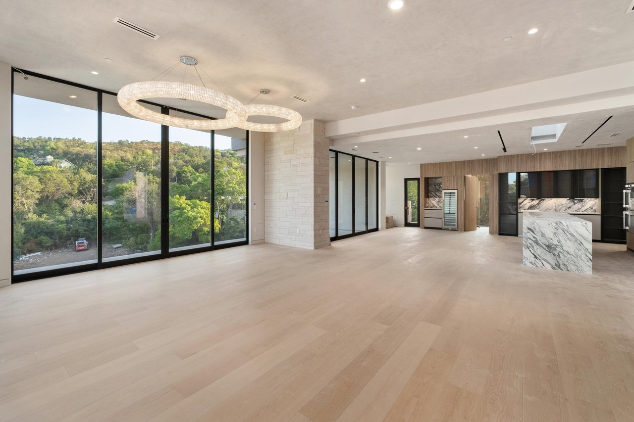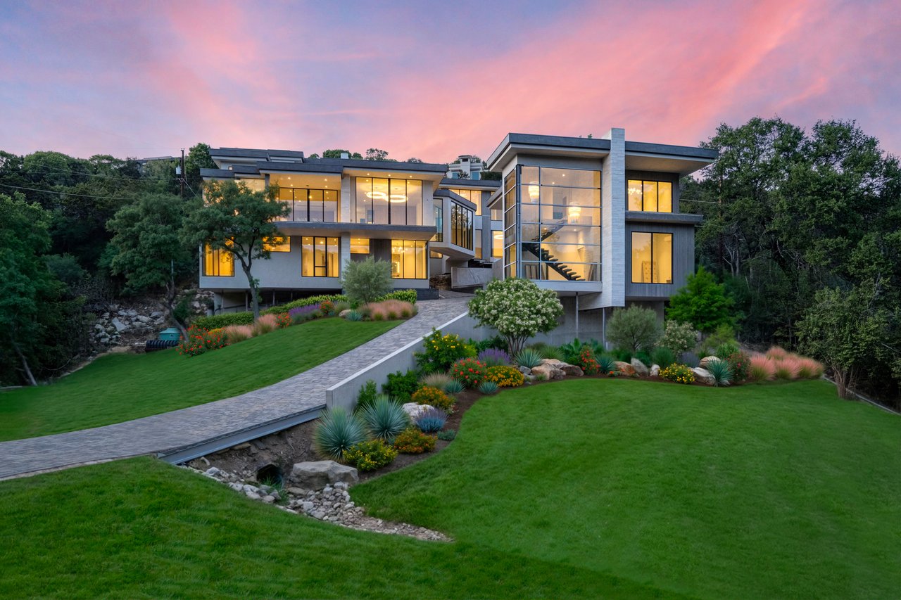 Situated in a premier West Lake Hills location, this newly constructed modern estate is a striking architectural statement. Set on ~1 acre and surrounded by the natural beauty of the Texas Hill Country, the property offers exceptional privacy with sweeping views framed by expansive floor-to-ceiling windows. Clean, contemporary design is elevated by high-end finishes, including Italian marble countertops, a marble-clad fireplace, and Venetian plaster walls that add warmth and sophistication throughout.